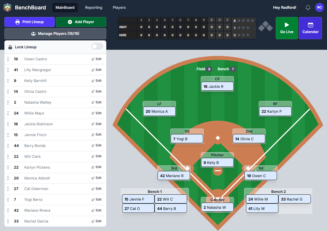 And what's coming next changes what BenchBoard is. And yes, you can still print lineups free of charge - faster than any other interface that has tried.